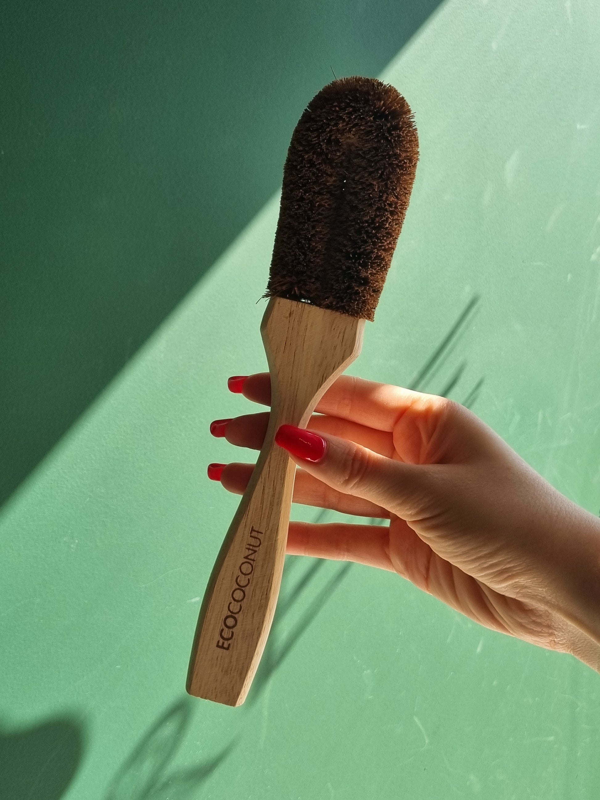 EcoCoconut dish brush, 100% vegan and plastic-free. A sustainable cleaning brush made with coconut fibre.
