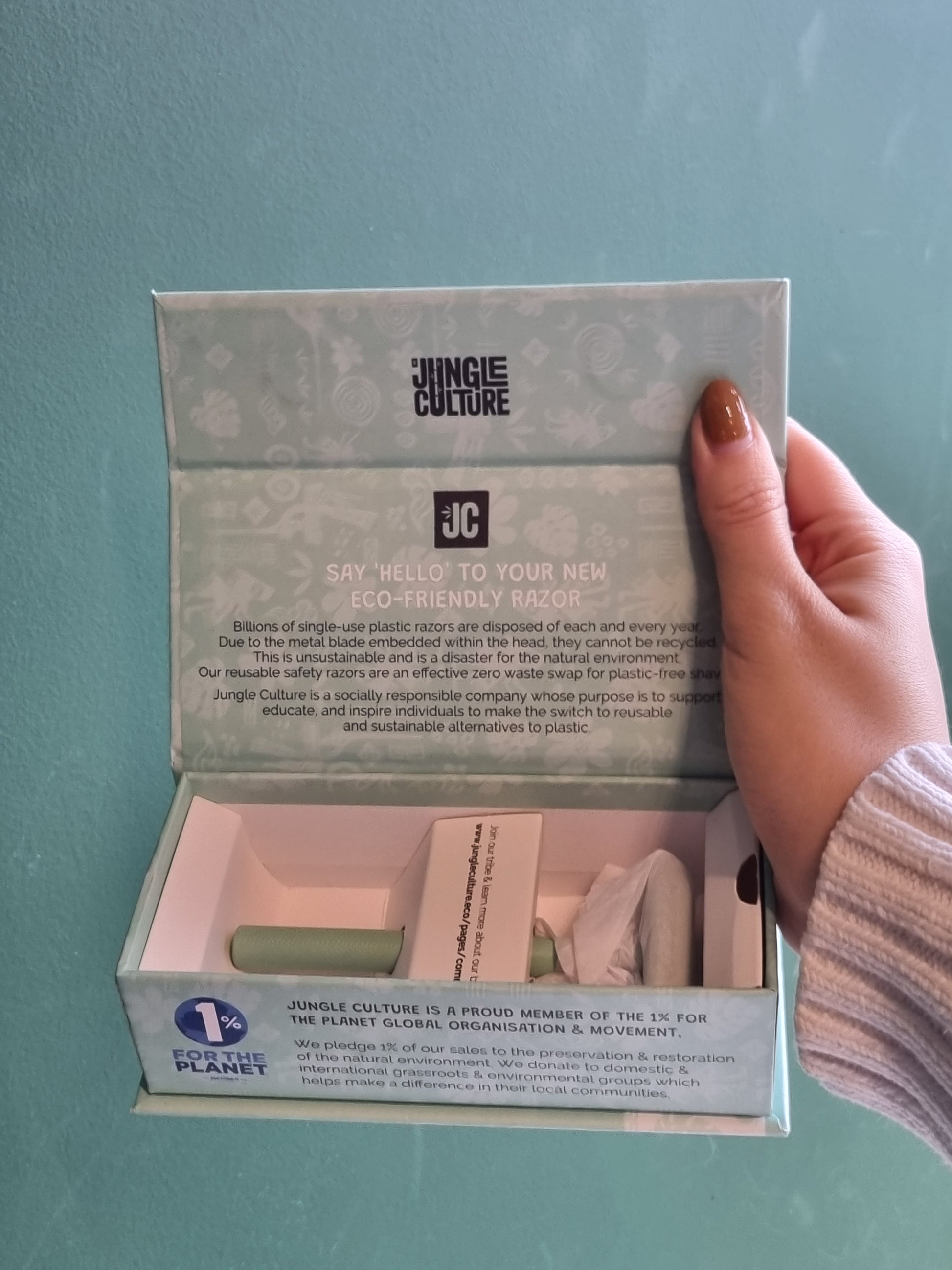The razors are accompanied by a natural white travel bag, made from a blend of soft organic cotton and ethically sourced jute. The razors come in a premium, magnetic gift box, colour matched to make the perfect sustainable gift.