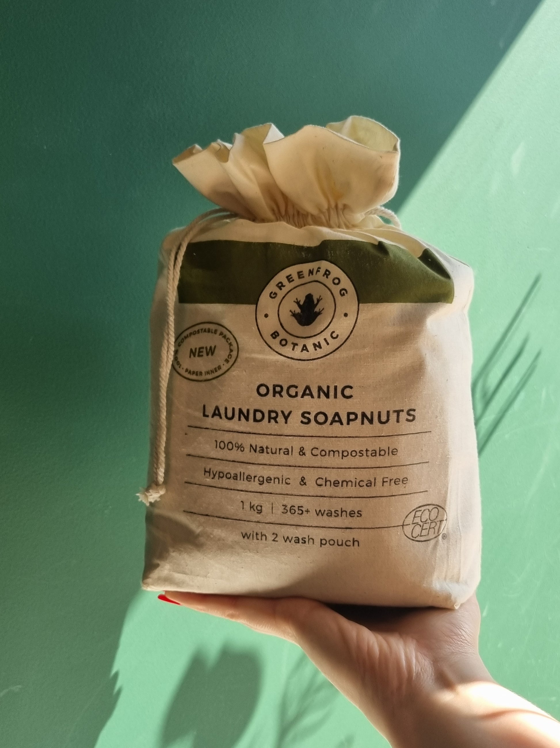 Laundry soapnuts derived from trees in India. Simply take 5-8 crushed nuts in the muslin bag provided and pop straight in the wash as an alternative to laundry liquid.