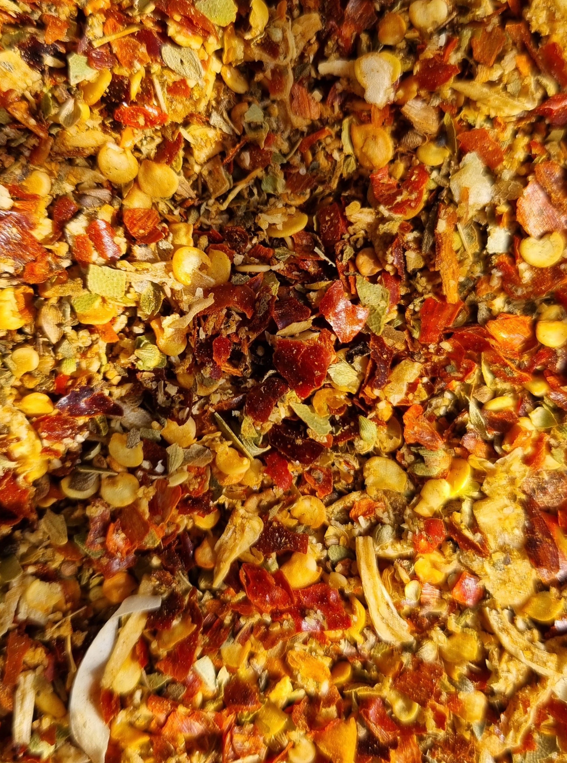 Contains; Chilli, Garlic, Onion, Black Pepper, Salt, Basil, Oregano, Coriander, Bay leaves