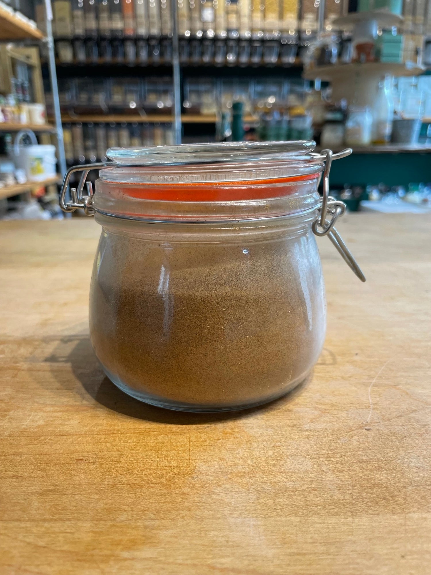 Ingredients: Vegetable Bouillon (Sea Salt, Potato Starch, Maltodextrin, Yeast Extract Powder, Onion Powder, CELERY Powder, Carrot Powder, Rapeseed Oil, Sugar, Garlic Powder, Parsley, Fenugreek, White Pepper, CELERY Seed Extract, Natural Flavouring, Loveage Root Extract), Coriander, Cinnamon, Ginger, Cayenne Pepper, Black Pepper, Cassia, Pimento, Rose Petals, Green Cardamom, Galangal, Clove, Lavender, Mace, Nutmeg, Natural Flavourings